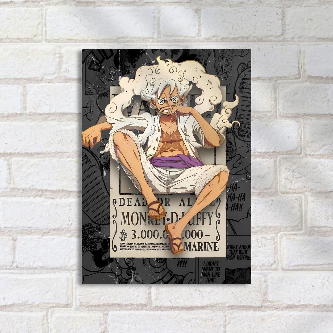 Quadro Decorativo Luffy Wanted Poster Gear Cinco One Piece