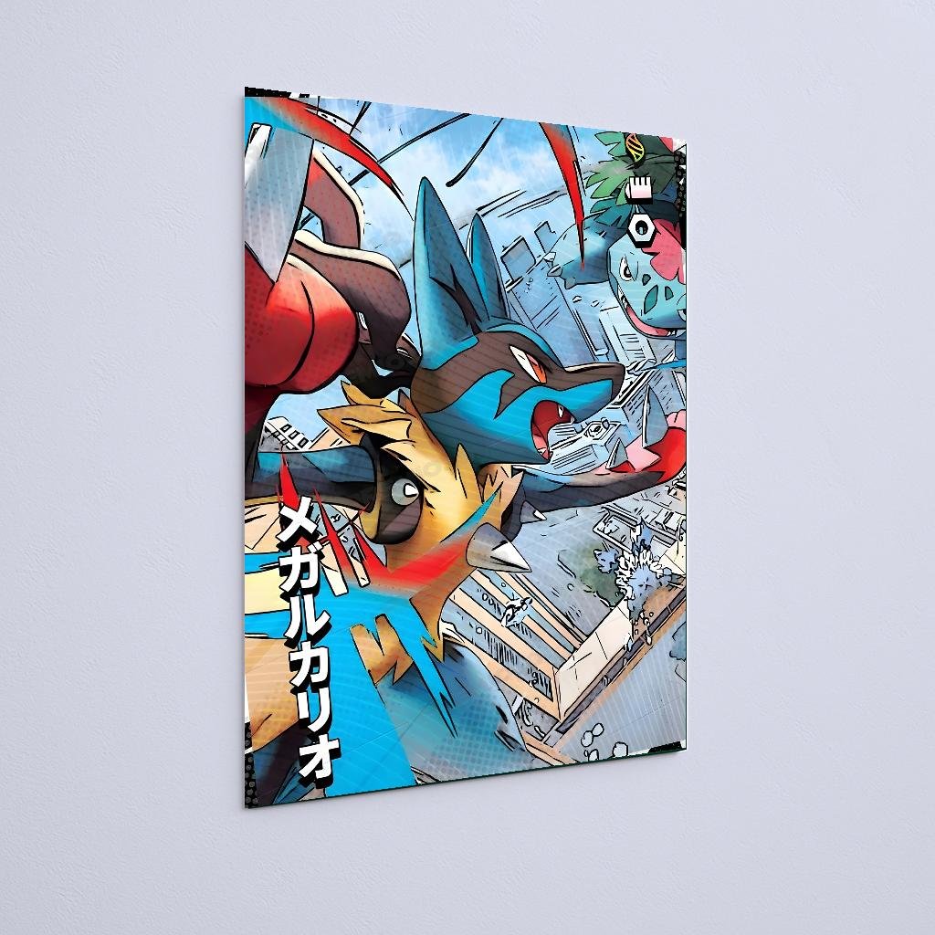 Quadro Decorativo Mega Lucario Batalha Cidade