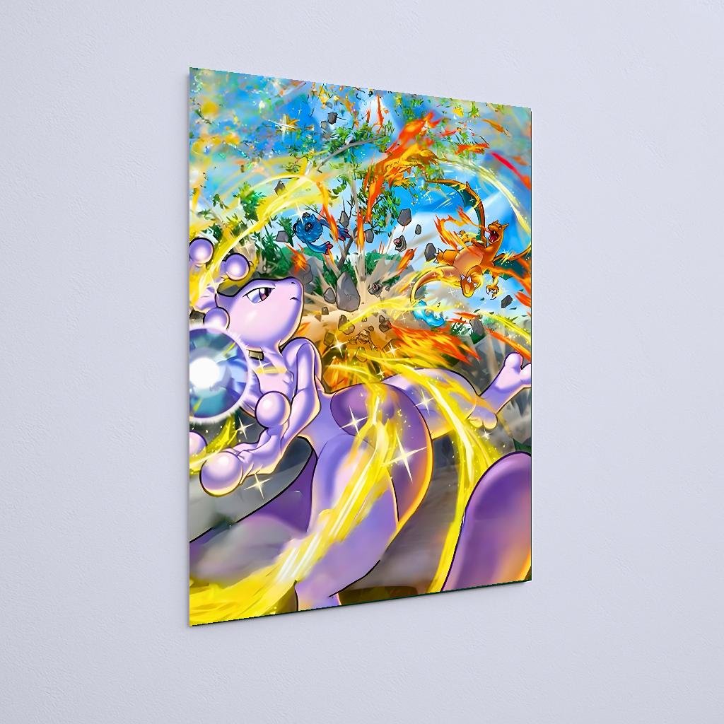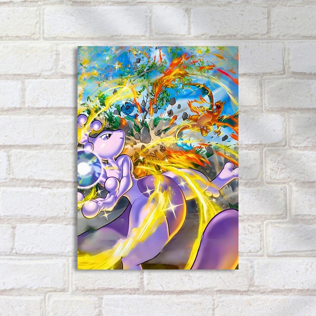 Quadro Decorativo Mewtwo Charizard Explosao Batalha