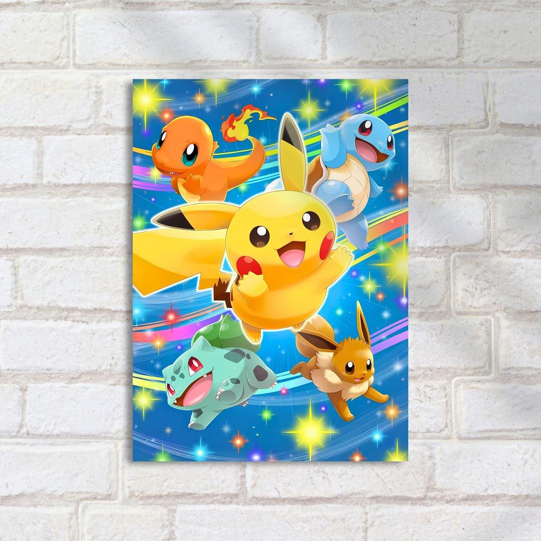 Quadro Decorativo Pikachu E Amigos Felizes