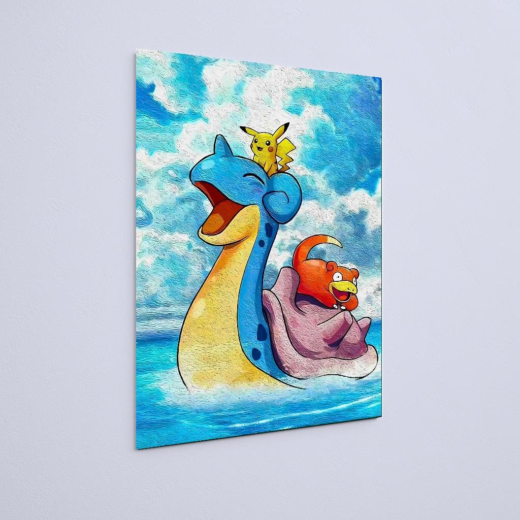 Quadro Decorativo Pikachu Lapras Slowpoke Mar