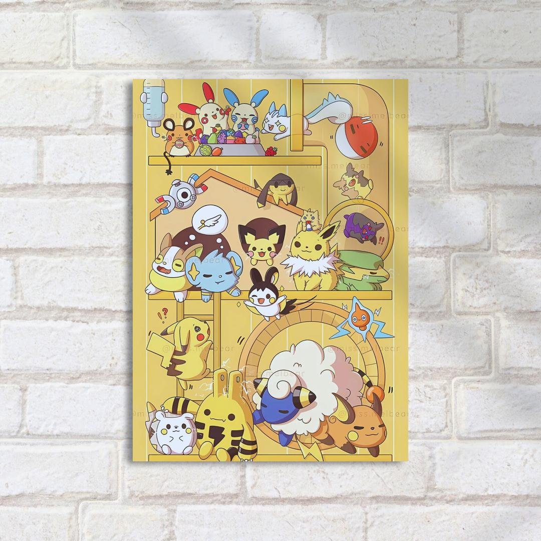 Quadro Decorativo Pokemons Eletricos Divertidos Sala