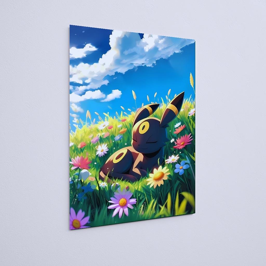 Quadro Decorativo Umbreon Dormindo Campo Flores