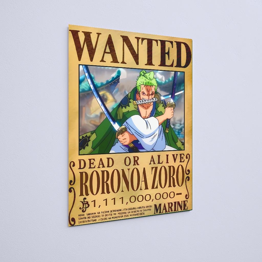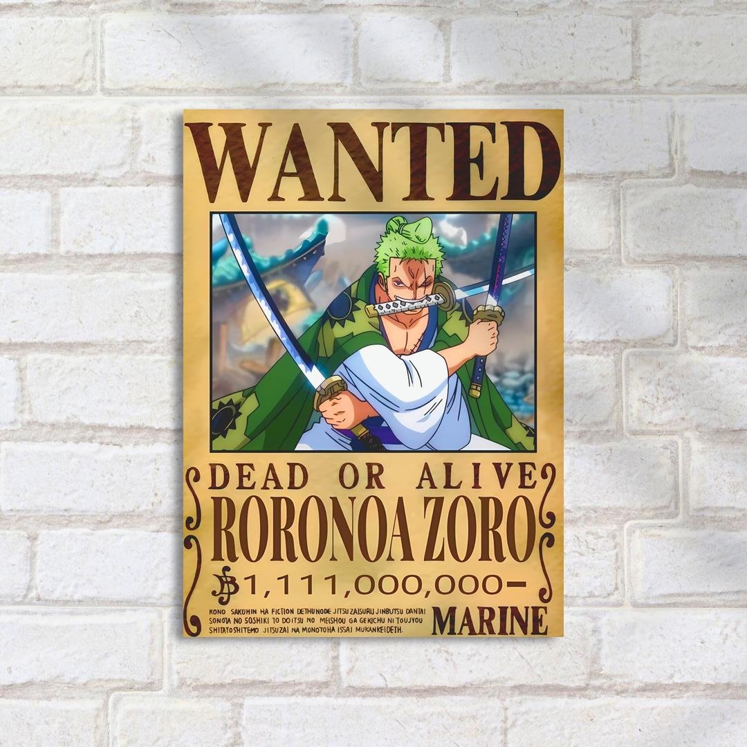 Quadro Decorativo Zoro Cartaz Recompensa Samurai One Piece Wanted