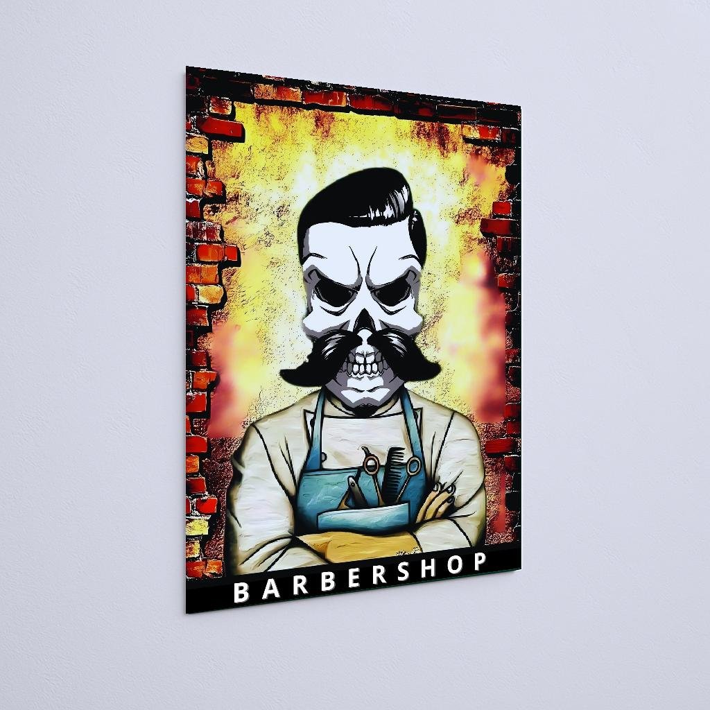 Quadro Decorativo Barbeiro Caveira Fogo