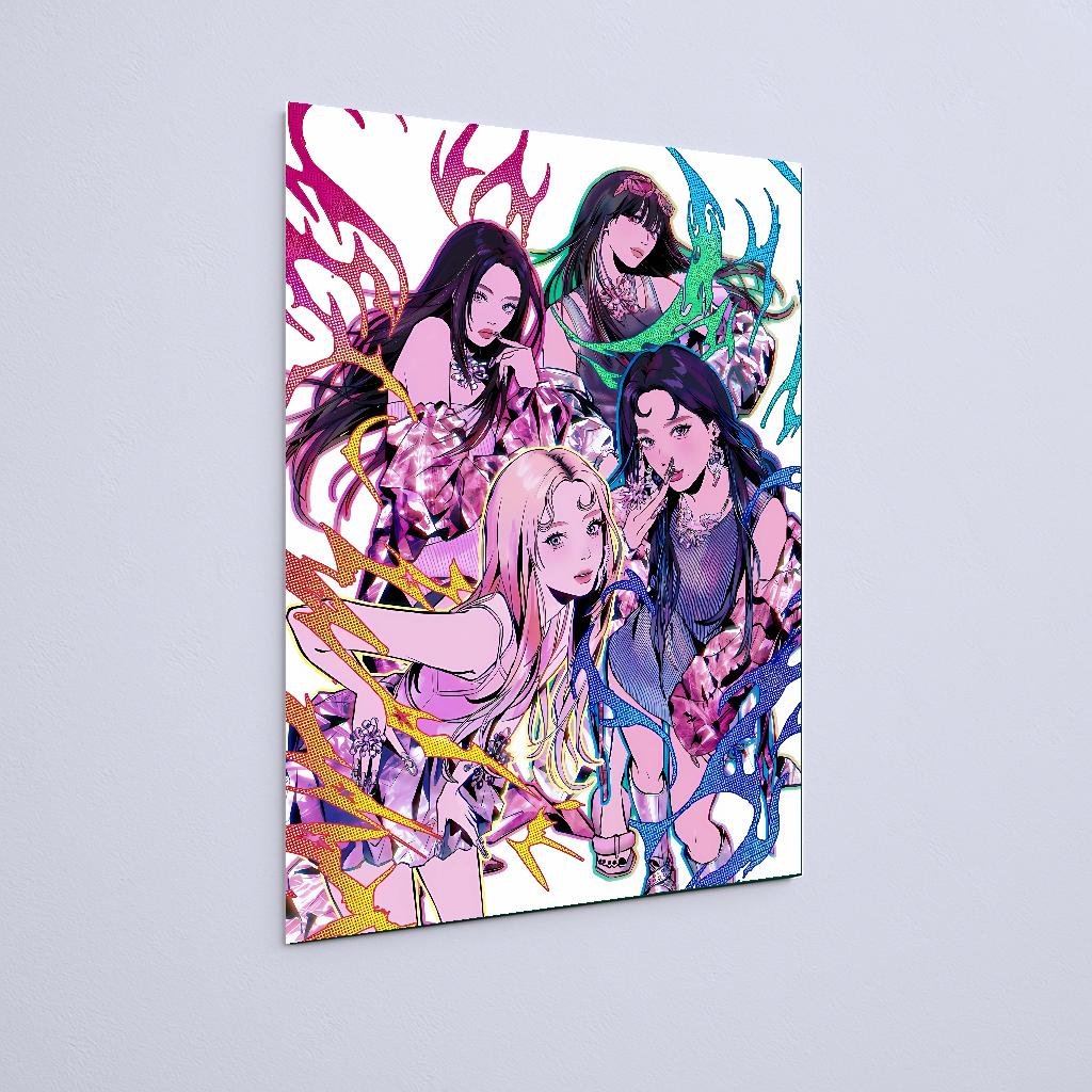 Quadro Decorativo Blackpink Ilustracao Colorida Personagens Kpop