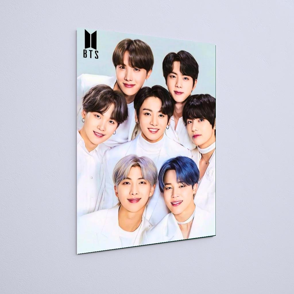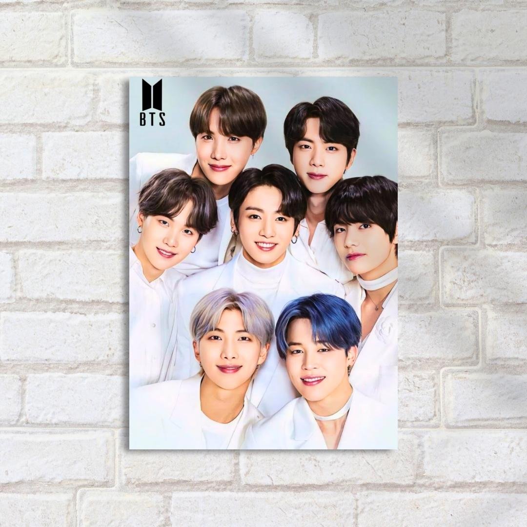 Quadro Decorativo Bts Grupo Sorrindo Branco Kpop