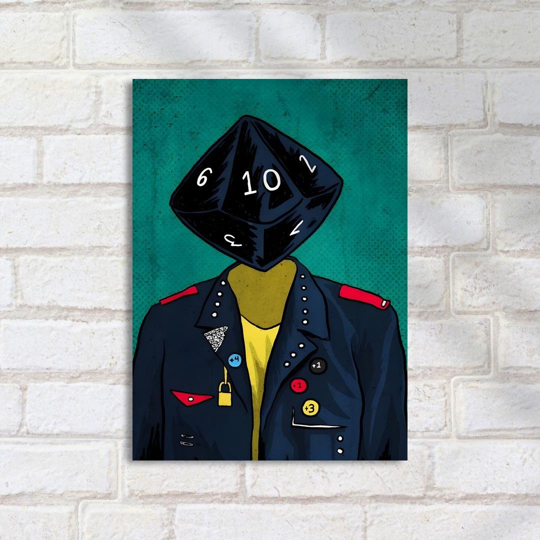 Quadro Decorativo Dado D20 Jaqueta Divertida RPG