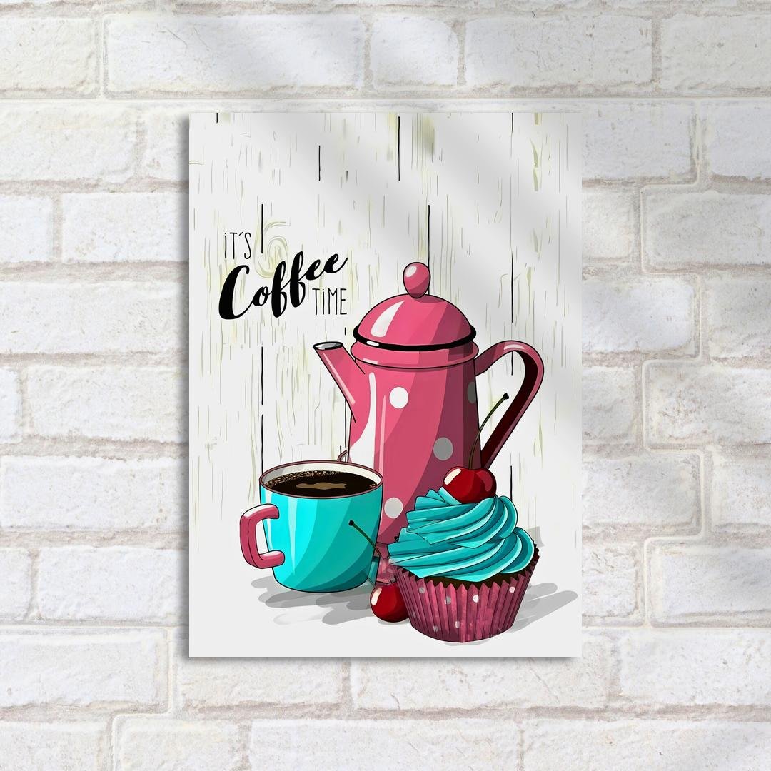 Quadro Decorativo Cafeteira Xicara Cupcake