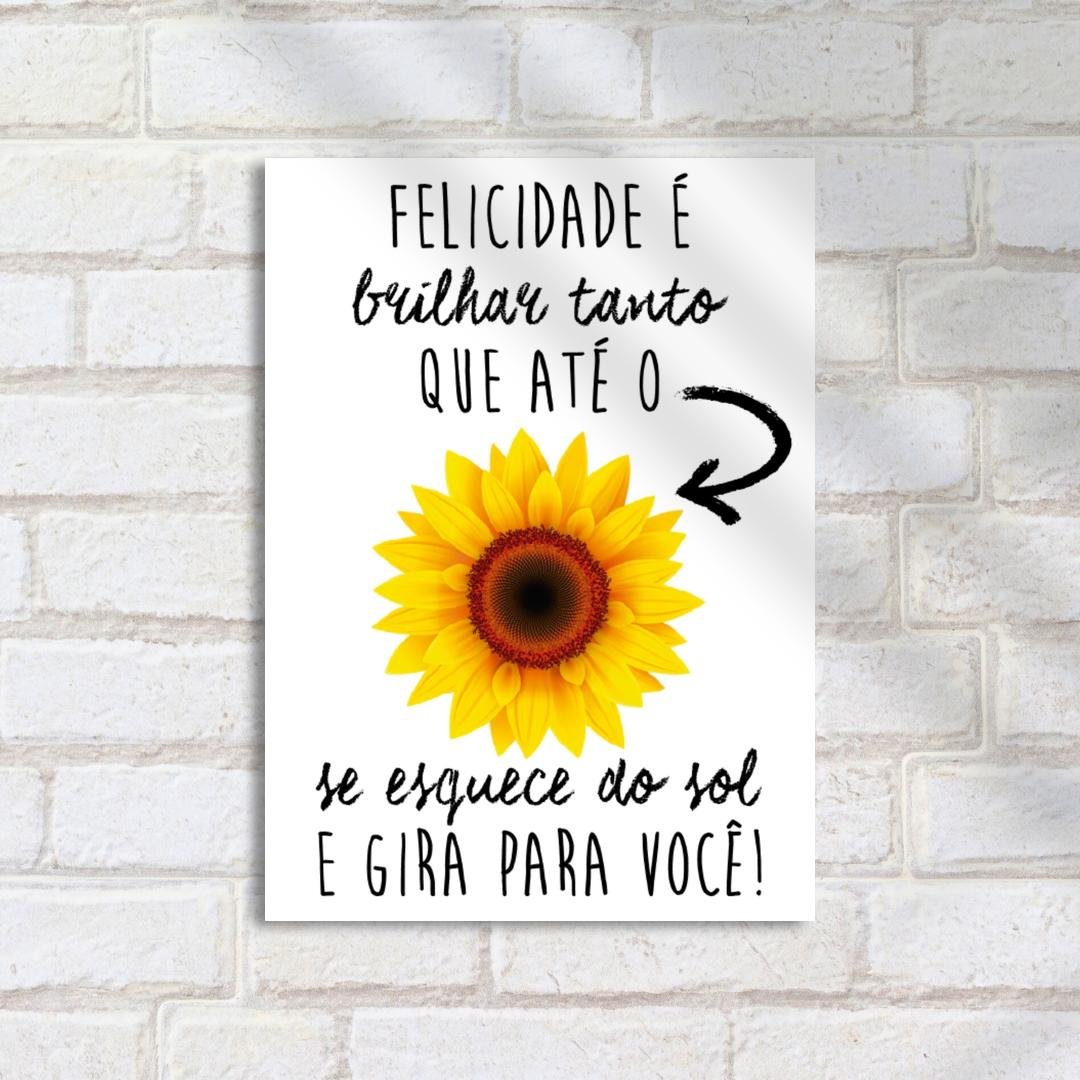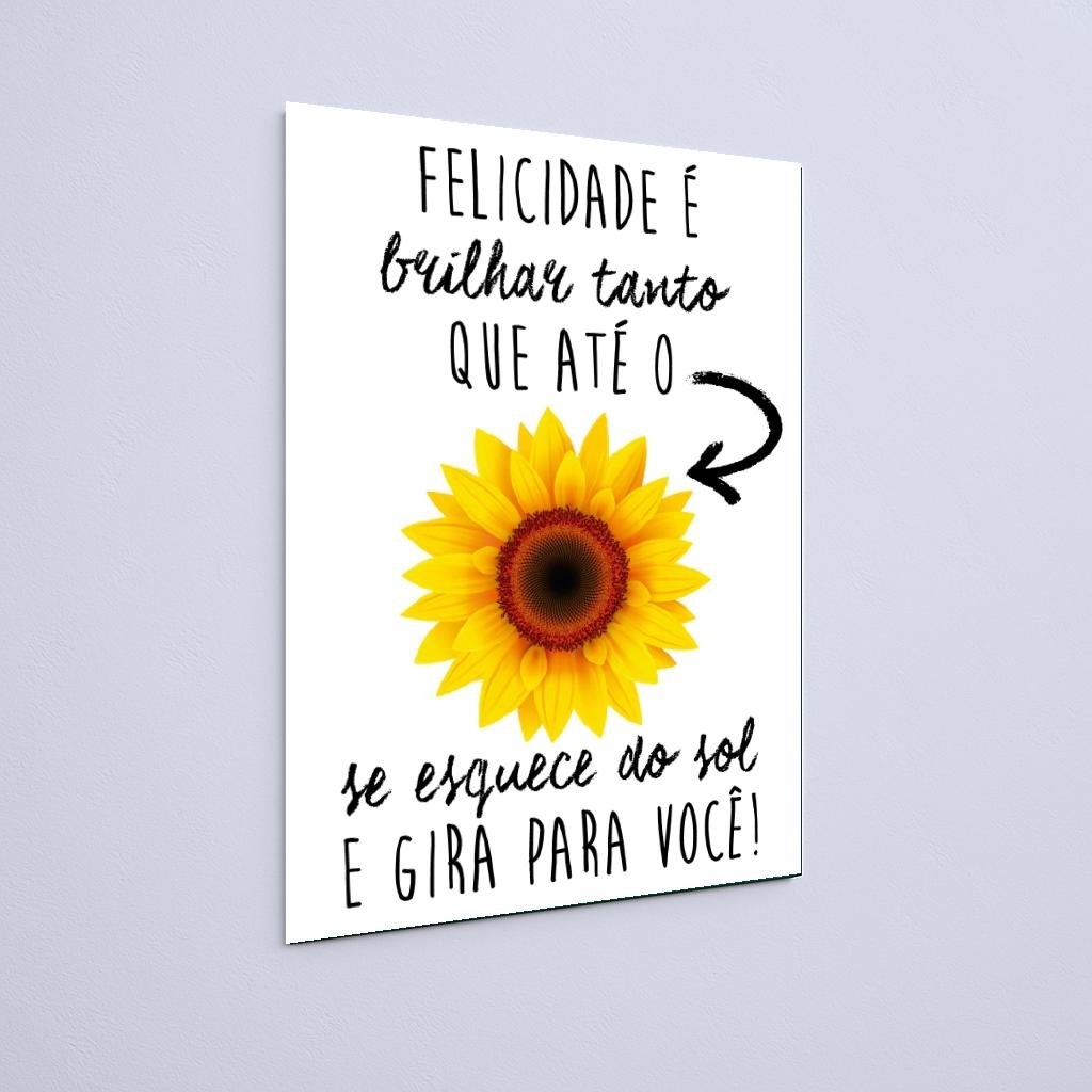 Quadro Decorativo Girasol Felicidade Frase Motivacional