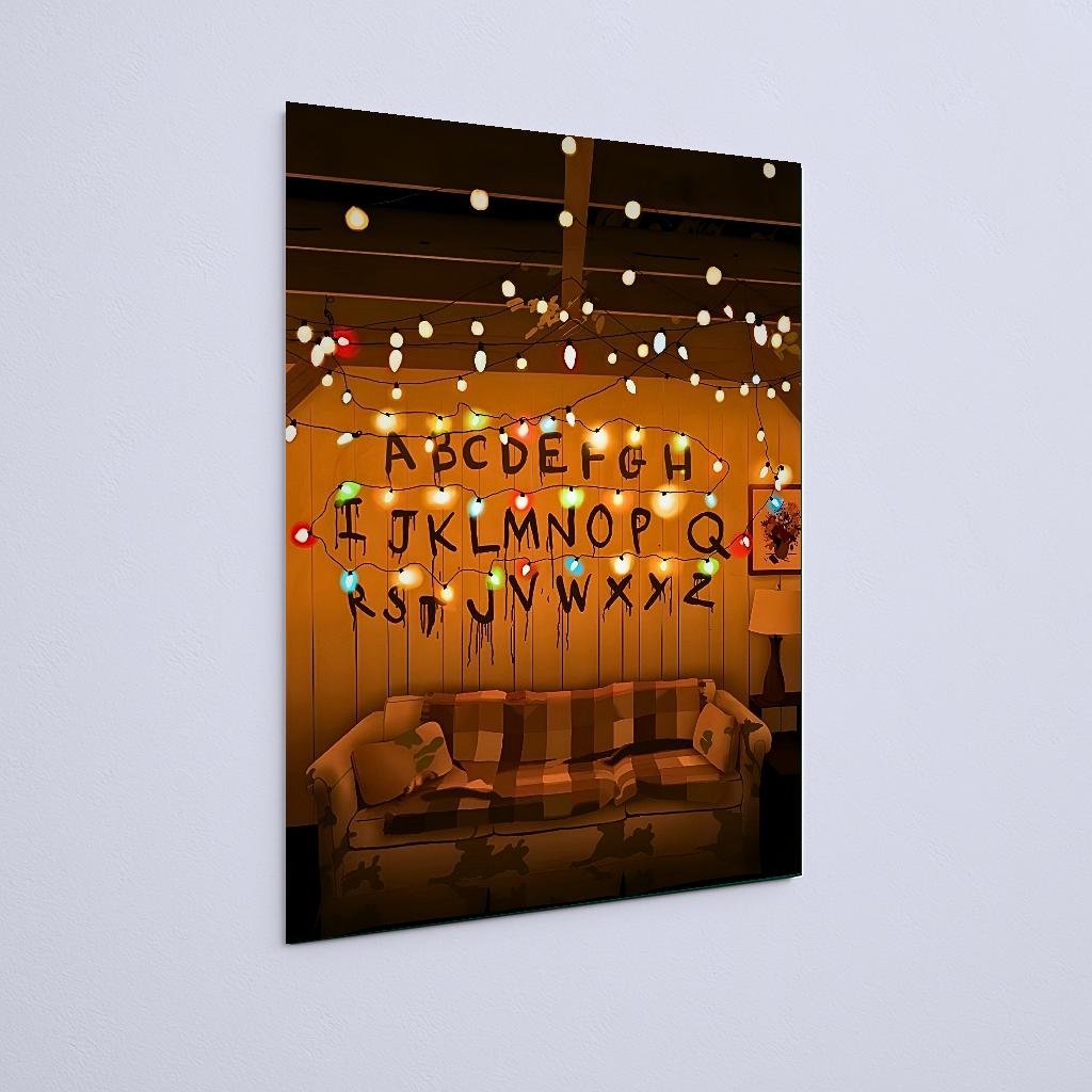 Quadro Decorativo Alfabeto Luzes Coloridas Sofa Stranger Things