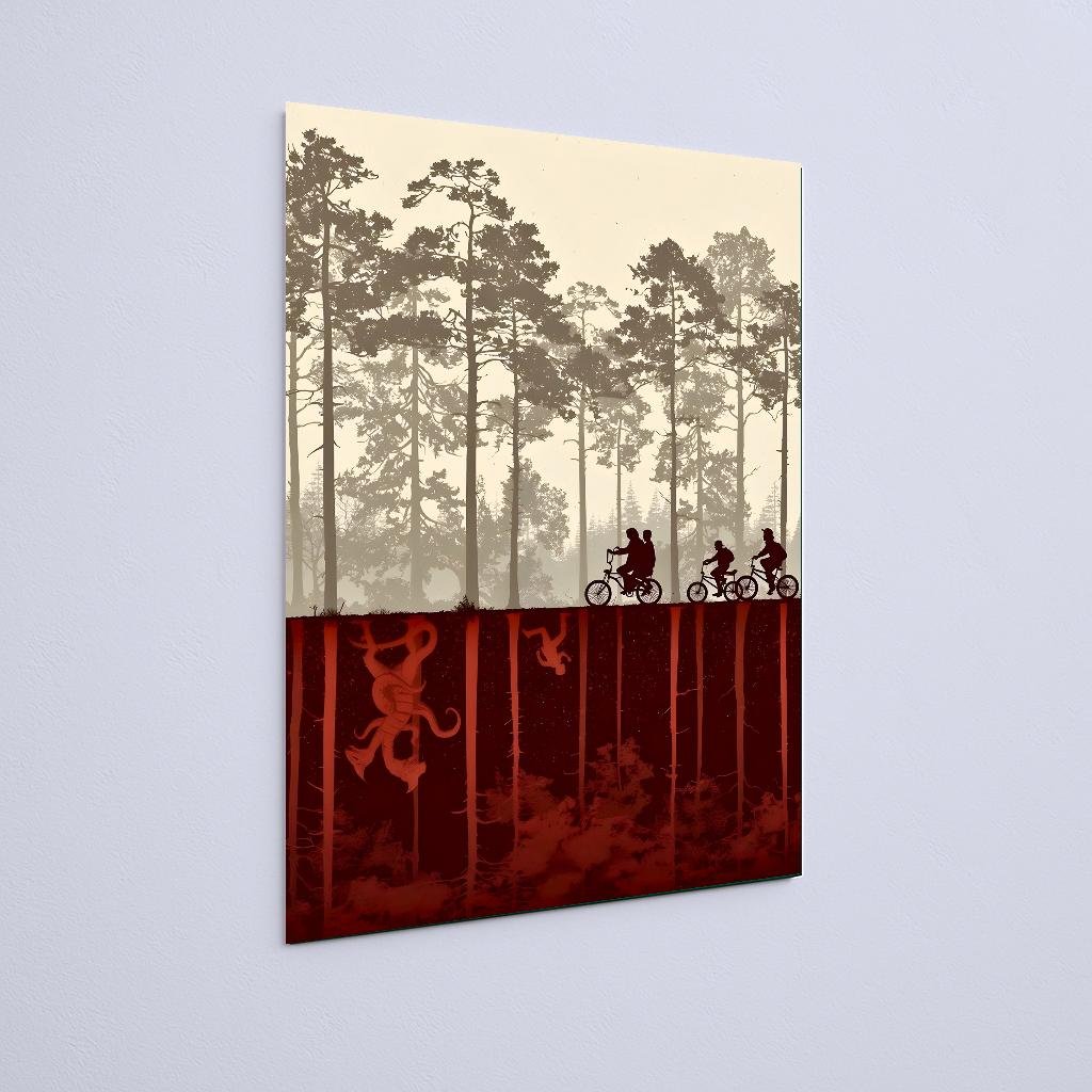 Quadro Decorativo Ciclistas Floresta Mundo Invertido Stranger Things