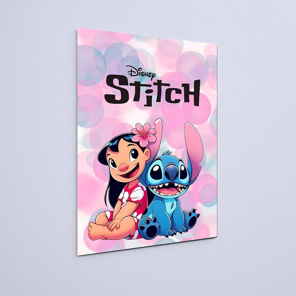 Quadro Decorativo Lilo Stitch Sorrindo Rosa