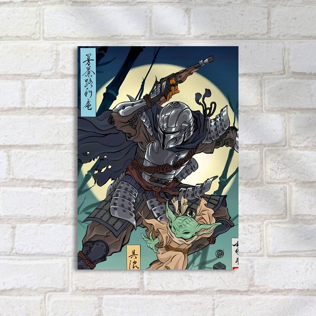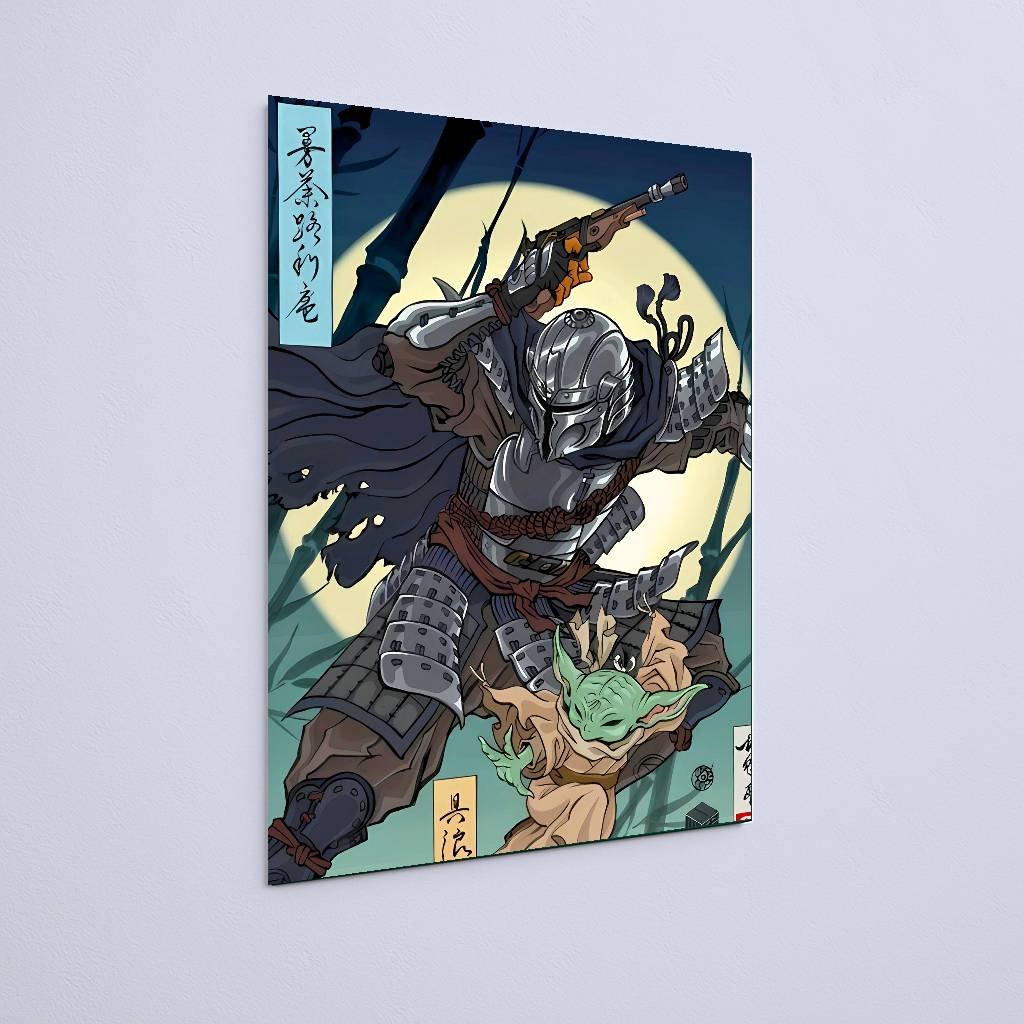 Quadro Decorativo Mandaloriano Grogu Samurai Lua