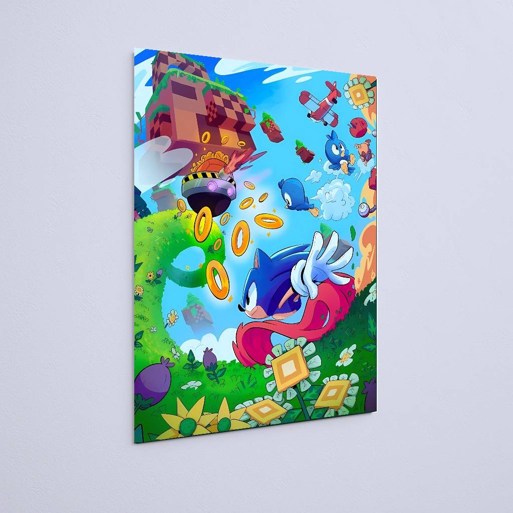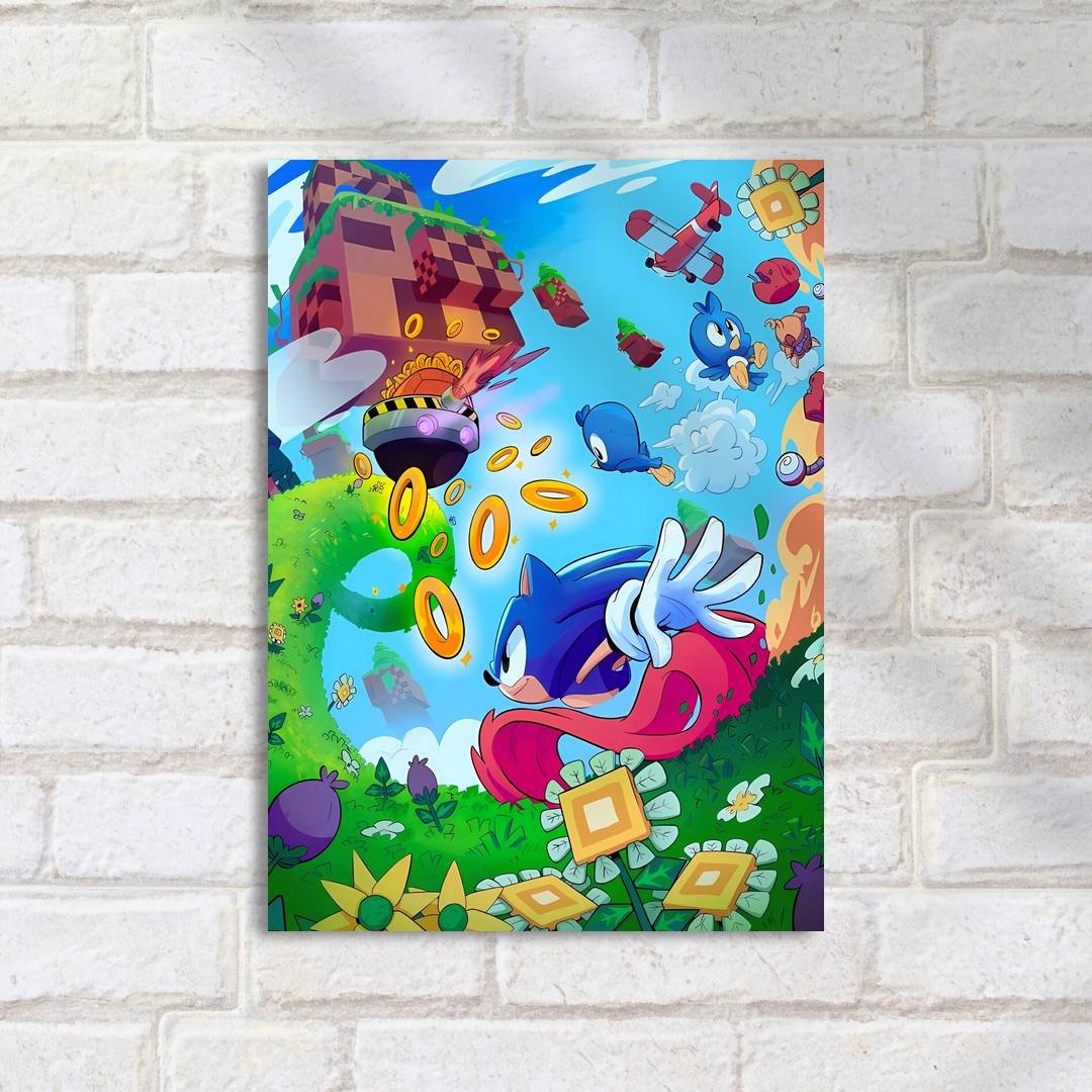 Quadro Decorativo Sonic Correndo Aneis Cenario