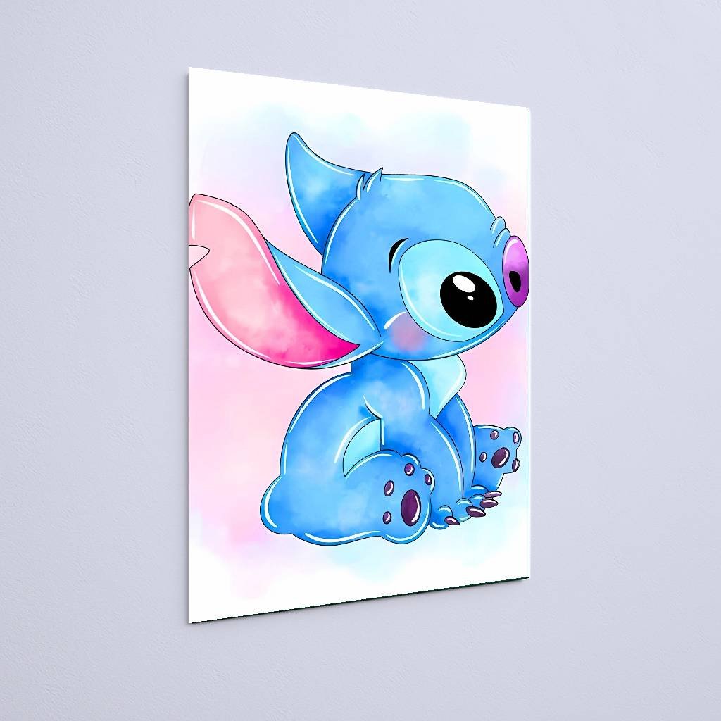 Quadro Decorativo Stitch Sentado Fofo Azul