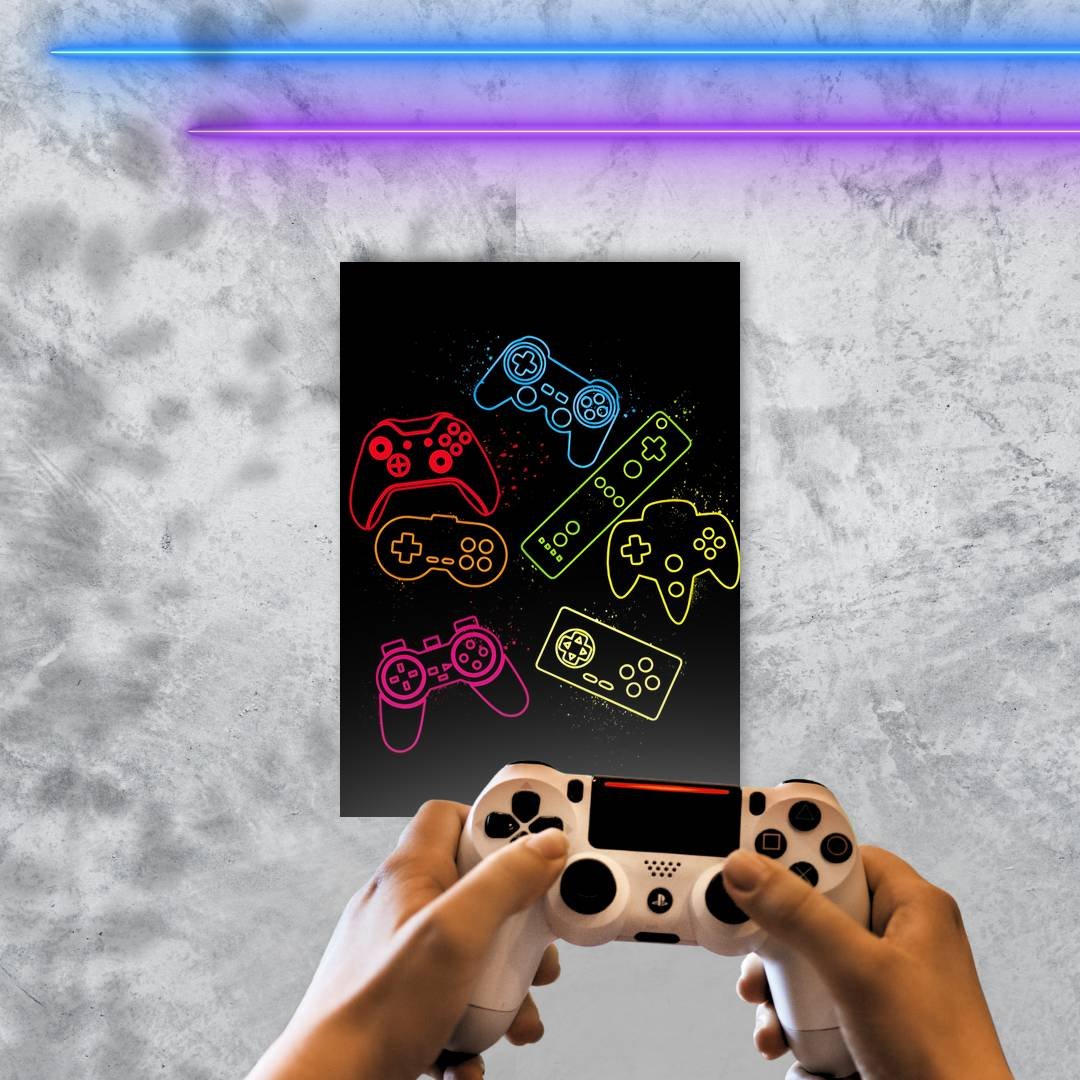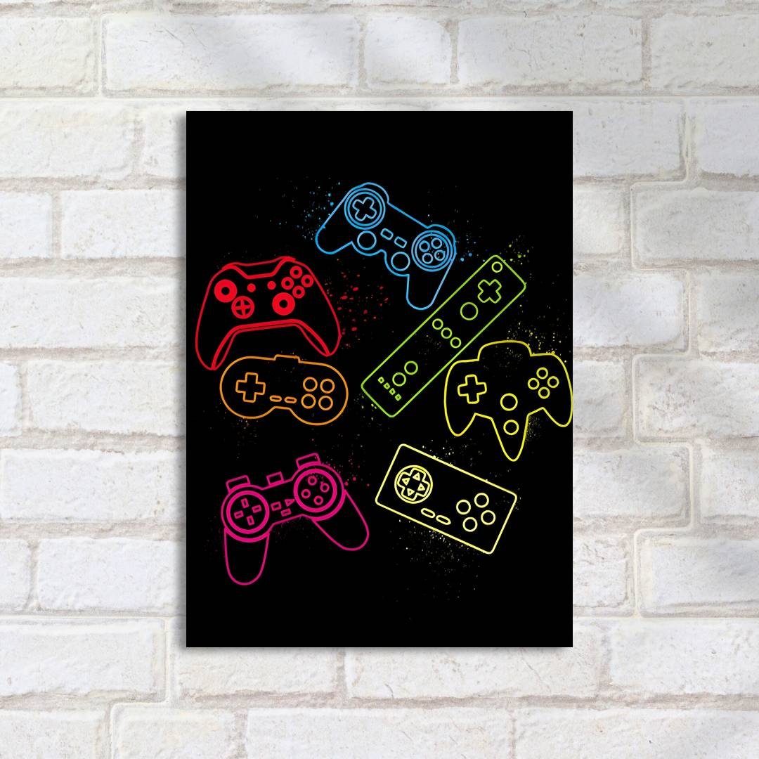 Quadro Decorativo Controles Games Neon Coloridos