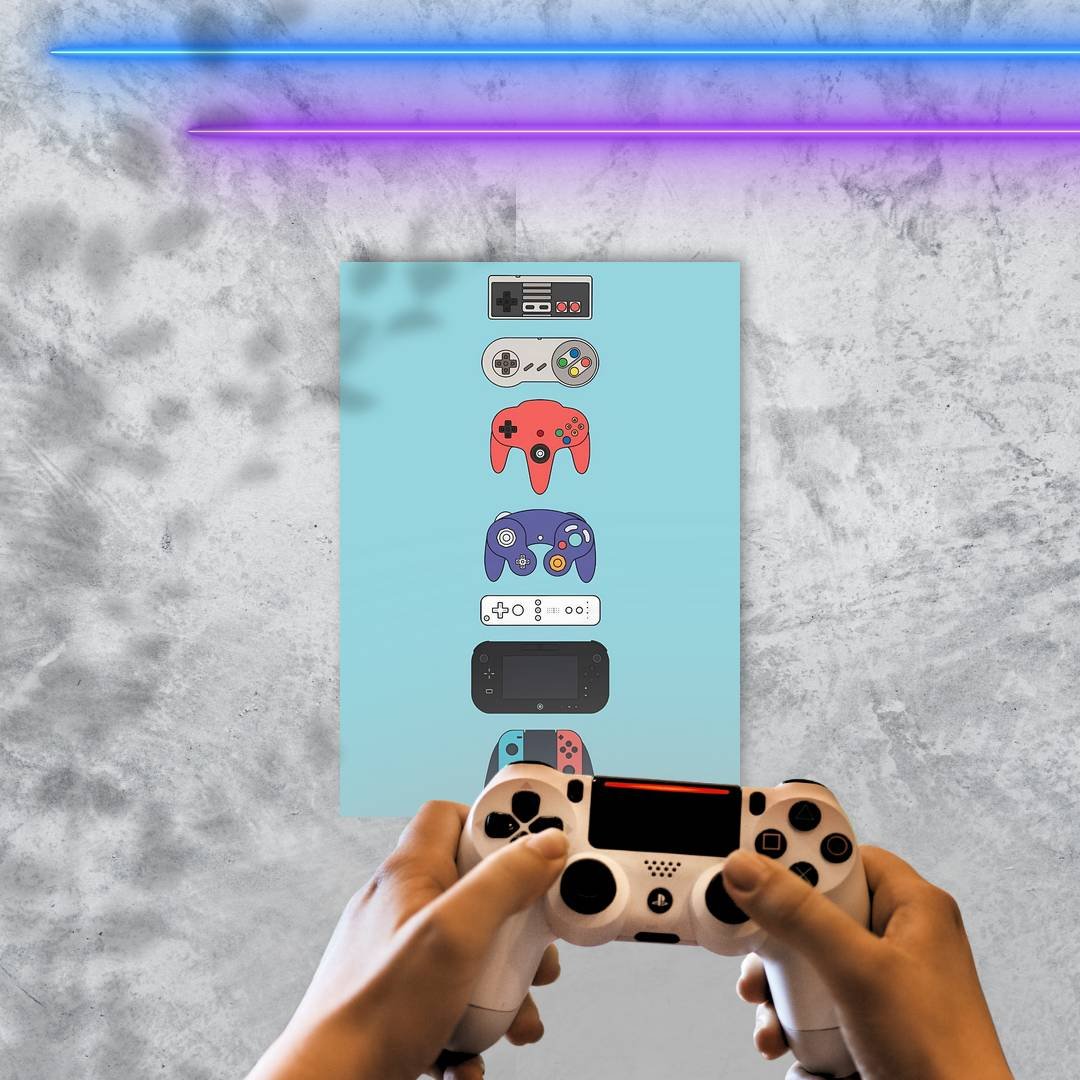 Quadro Decorativo Controles Nintendo Evolucao Icone