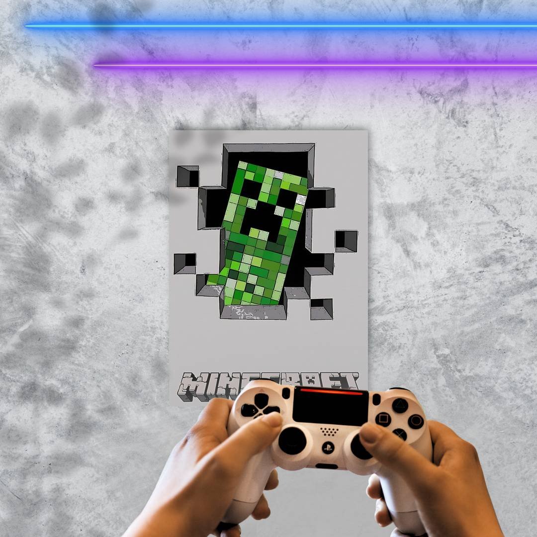 Quadro Decorativo Creeper Minecraft Parede Cinza