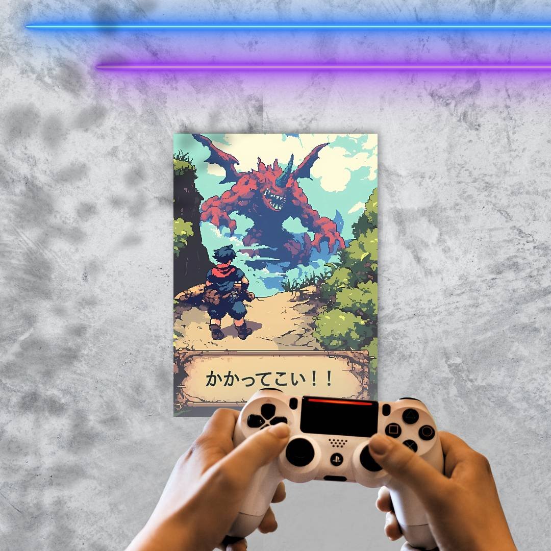 Quadro Decorativo Guerreiro Vs Dragao Gigante