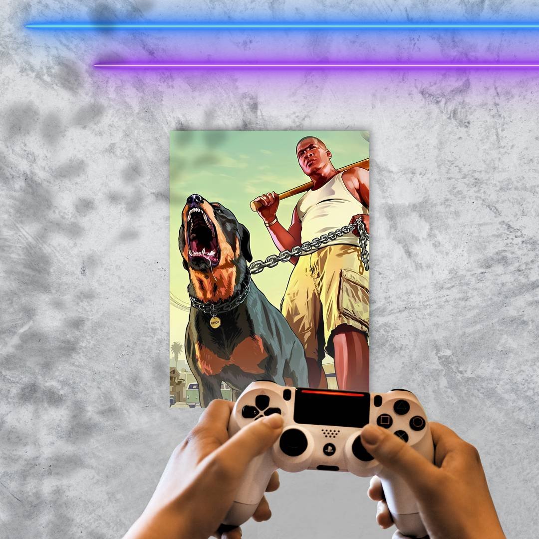 Quadro Decorativo Homem Cachorro Bastao Gta