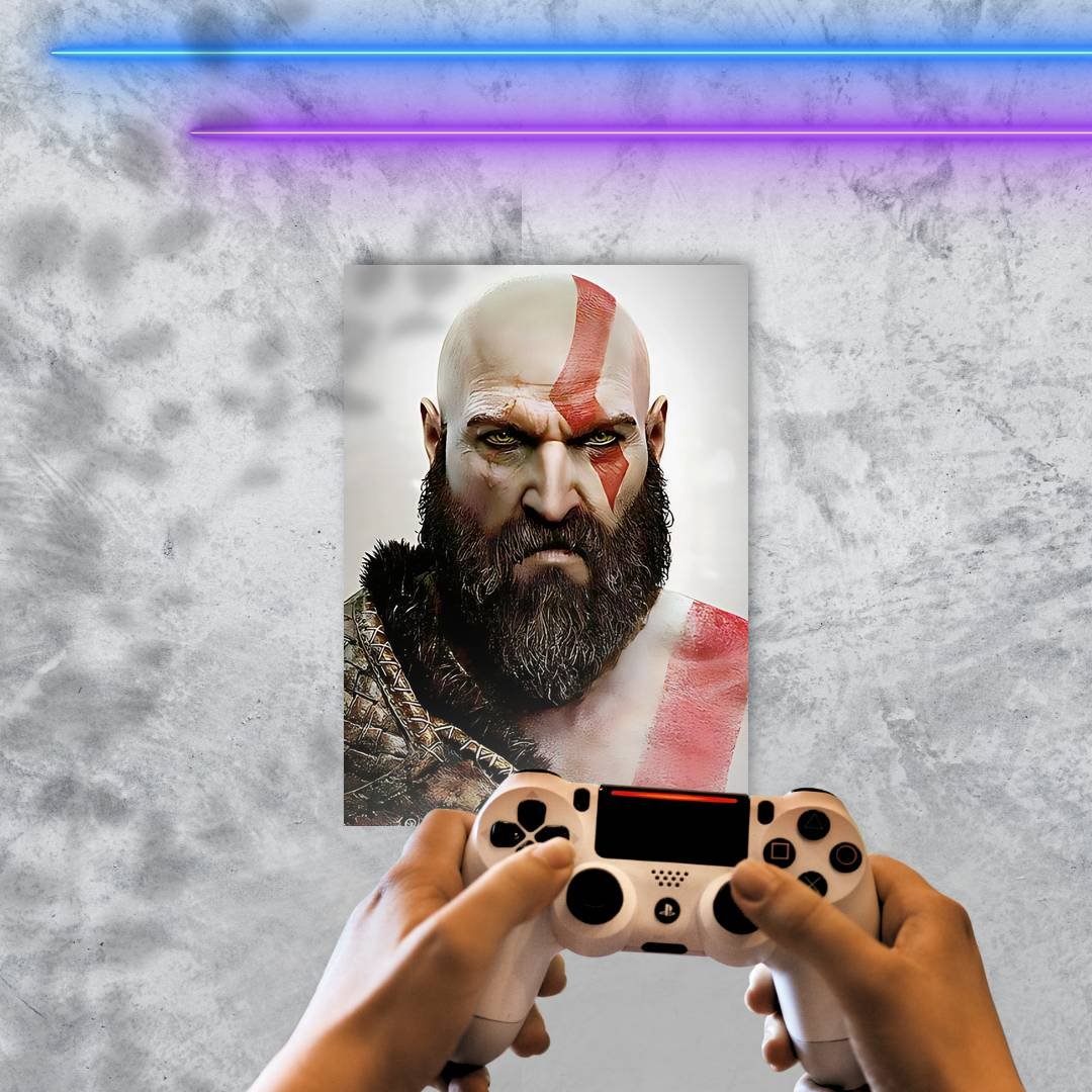 Quadro Decorativo Kratos Rosto Barba Marcas