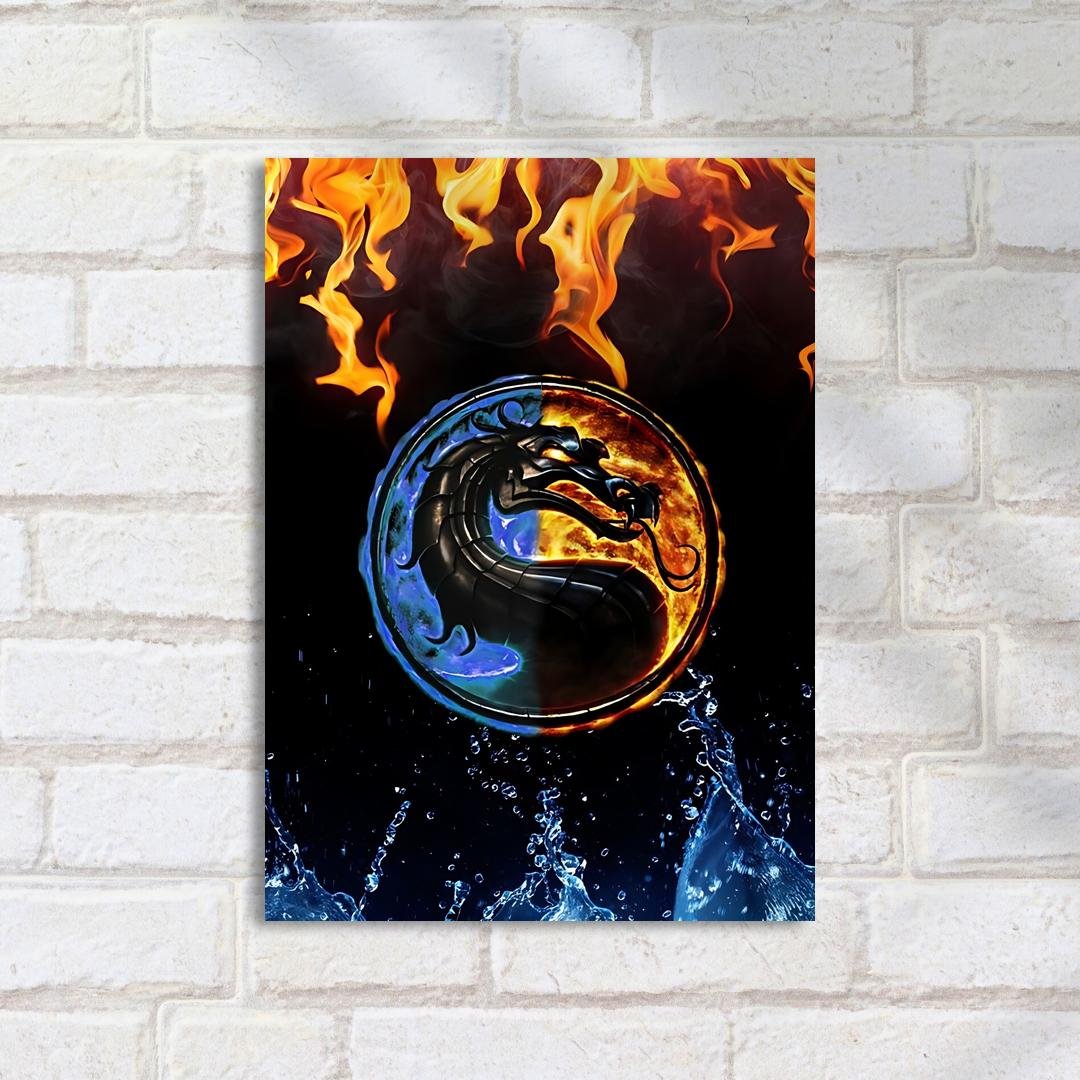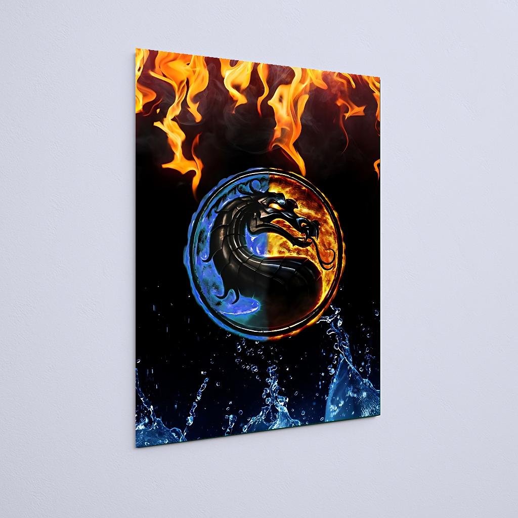 Quadro Decorativo Mortal Kombat Logo Fogo Agua