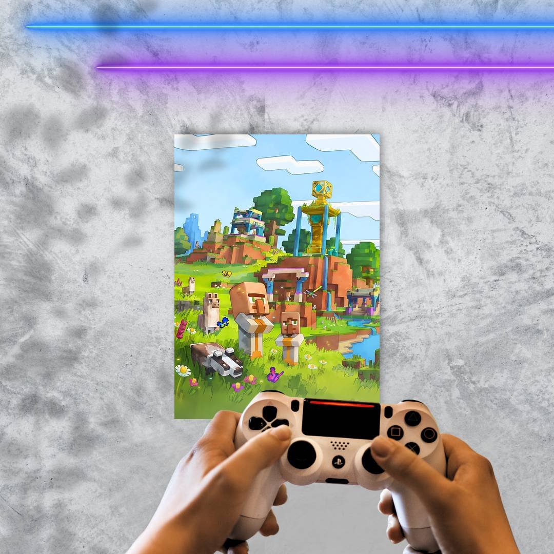 Quadro Decorativo Vila Minecraft Campo Colorido