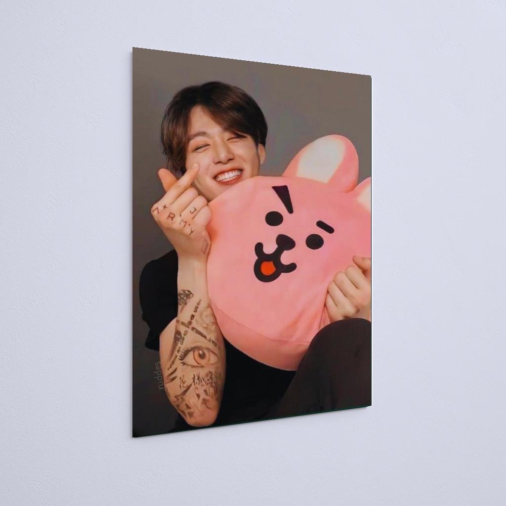 Quadro Decorativo Jungkook Bts Sorrindo Almofada Rosa
