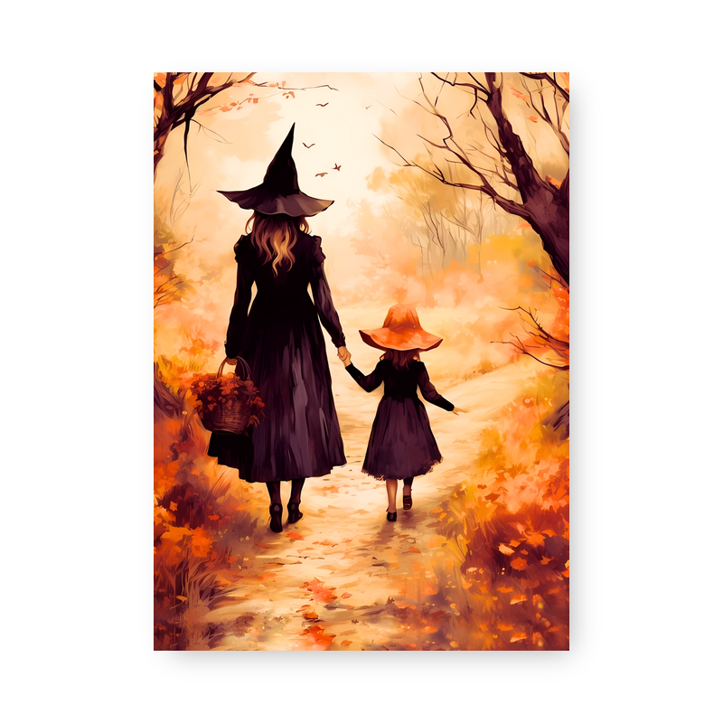 Quadro Decorativo – Bruxas Caminhando Floresta Outono