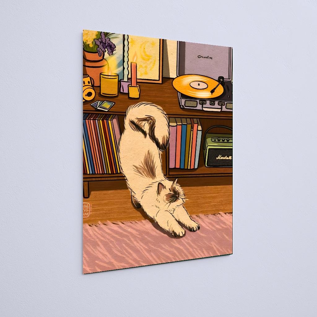 Quadro Decorativo Gato Alongando Em Frente Estante
