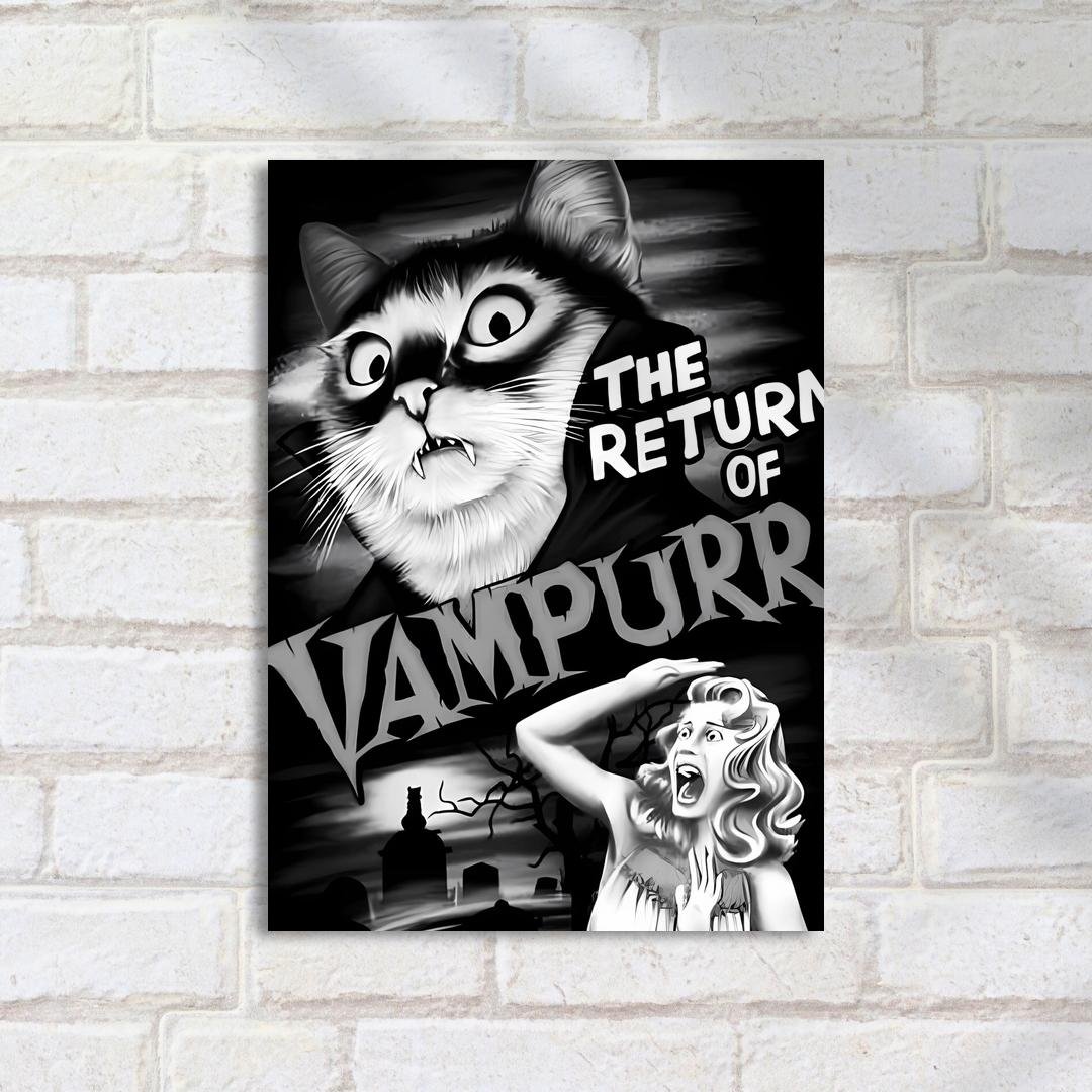 Quadro Decorativo Gato Vampiro Assustador Poster
