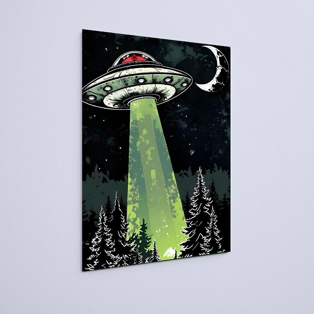 Quadro Decorativo Ovni Floresta Luz Verde