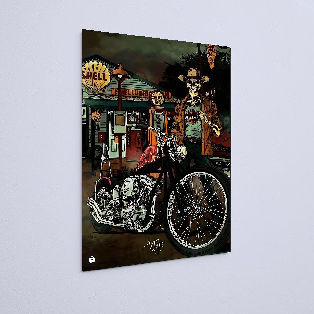 Quadro Decorativo Esqueleto Motocicleta Posto Shell